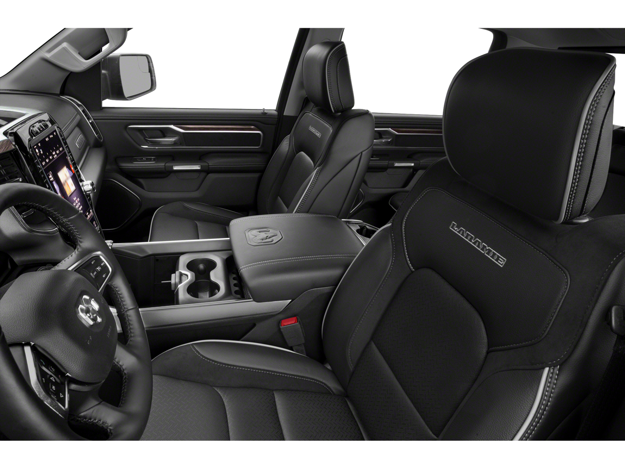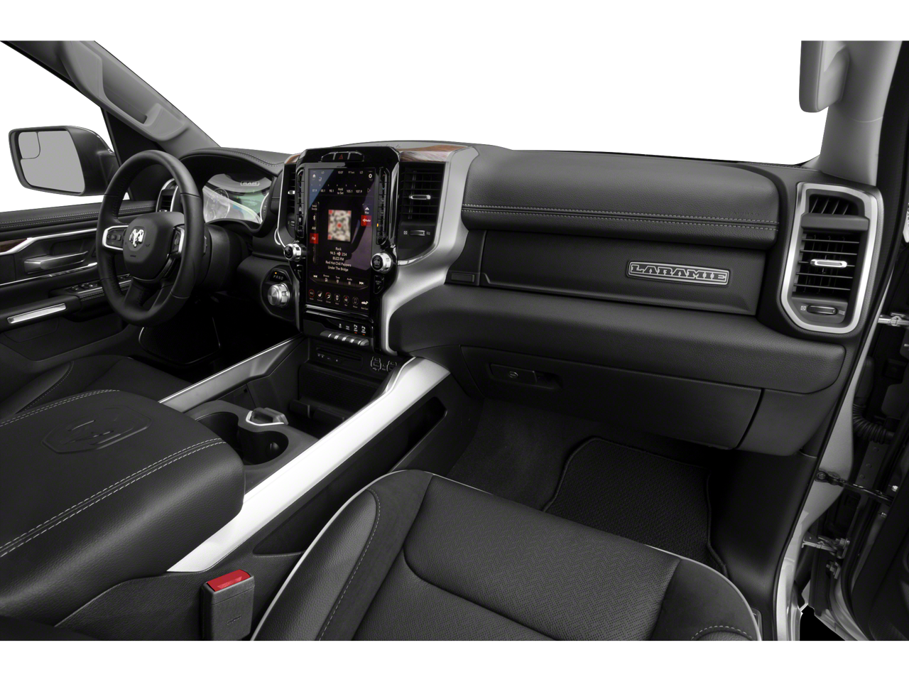 15/21 City/Highway MPG #1 Seat Foam Cushion, 1-Yr SiriusXM Guardian Trial, 10 Speakers, 12 Touchscreen Display, 3 Rear Seat Head Restraints, 4 Way Front Headrests, 4-Wheel Disc Brakes, 48V Belt Starter Generator, 4G LTE Wi-Fi Hot Spot, 5-Year SiriusXM Traffic Service, 5-Year SiriusXM Travel Link Service, 8.4 Touchscreen Display, ABS brakes, Adaptive Cruise Control w/Stop & Go, Adjustable pedals, Advanced Safety Group, Air Conditioning, Alloy wheels, AM/FM radio: SiriusXM, Anti-Spin Differential Rear Axle, Apple CarPlay, Apple CarPlay/Android Auto, Audio memory, Auto High Beam Headlamp Control, Auto-dimming door mirrors, Auto-dimming Rear-View mirror, Automatic temperature control, Black Exterior Truck Badging, Black Headlamp Bezels, Black Interior Accents, Black Tubular Side Steps (DISC), Blind Spot & Cross Path Detection, Body Color Door Handles, Body Color Exterior Mirrors, Body Color Front Bumper, Body Color Premium Power Mirrors, Body Color Rear Bumper w/Step Pads, Brake assist, Bucket Seats, Bumpers: chrome, Compass, Delay-off headlights, Disassociated Touchscreen Display, Dome Dual LED Reading Lamp, Driver door bin, Driver Seat Memory, Driver vanity mirror, Dual Exhaust w/Black Tips, Dual front impact airbags, Dual front side impact airbags, Dual-Pane Panoramic Sunroof, Electronic Stability Control, Foam Bottle Insert (Door Trim Panel), For Details, Visit DriveUconnect.com, Front anti-roll bar, Front Center Armrest w/Storage, Front dual zone A/C, Front fog lights, Front reading lights, Front Seat Back Map Pockets, Front wheel independent suspension, Full Length Upgraded Floor Console, Full Speed Forward Collision Warning Plus, Fully automatic headlights, Garage door transmitter, Google Android Auto, GPS Antenna Input, GPS Navigation, Grille Surround 3 Black Texture 2 Black, harman/kardon 19 Speaker Premium Sound, HD Radio, Heated door mirrors, Heated Front Seats, Heated front seats, Heated Second Row Seats, Heated Steering Wheel, Heated steering wheel, Illuminated entry, Integrated Center Stack Radio, Lane Keep Assist, Laramie Level 2 Equipment Group, Leather steering wheel, Leather Trim 40/20/40 Bench Seat, Leather Trimmed Bucket Seats, LED Dome/Reading Lamp, Low tire pressure warning, Memory seat, Night Edition, Occupant sensing airbag, Outside temperature display, Overhead airbag, Overhead console, Panic alarm, Parallel & Perp Park Assist w/Stop, ParkSense Front/Rear Park Assist w/Stop (DISC), ParkView Rear Back-Up Camera, Passenger door bin, Passenger vanity mirror, Pedal memory, Power 4-Way Driver Lumbar Adjust, Power 4-Way Passenger Lumbar Adjust, Power 8-Way Driver & Passenger Seats, Power door mirrors, Power driver seat, Power passenger seat, Power steering, Power windows, Quick Order Package 27H Laramie, Radio data system, Radio: Uconnect 12 w/Navigation, Radio: Uconnect 4 w/8.4 Display, Radio: Uconnect 4C Nav w/8.4 Display, Rain Sensitive Windshield Wipers, Rear 60/40 Folding Seat, Rear 60/40 Folding Split Recline Seat, Rear anti-roll bar, Rear seat center armrest, Rear step bumper, Rear Underseat Compartment Storage, Rear Wheelhouse Liners, Rear window defroster, Remote keyless entry, Remote Tailgate Release, Security system, SiriusXM Satellite Radio, SiriusXM Traffic Plus, SiriusXM Travel Link, SiriusXM w/360L, Speed control, Split folding rear seat, Sport Performance Hood, Steering wheel mounted audio controls, Tachometer, Tailgate Ajar Warning Lamp, Telescoping steering wheel, Tilt steering wheel, Traction control, Trailer Brake Control, Trip computer, Turn signal indicator mirrors, USB Host Flip, Variably intermittent wipers, Ventilat